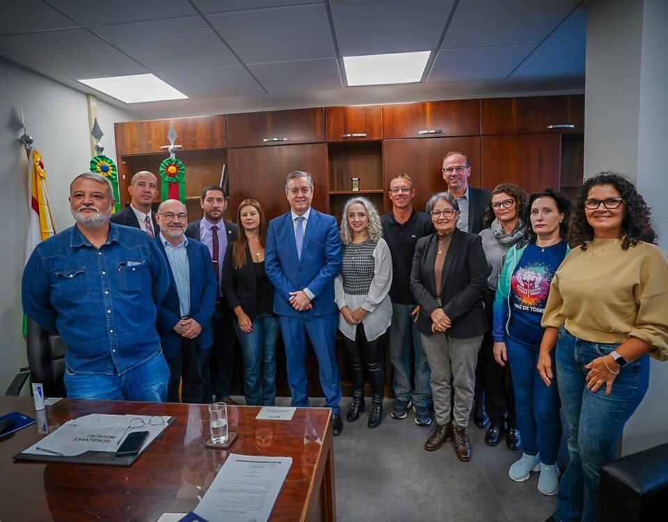 O prefeito Delci Dimer, acompanhado do vice-prefeito André Pozzi, do procurador-geral do município, Régis Souza, da secretária de Trabalho, Indústria e Comércio, Patrícia Cândido, do presidente […]