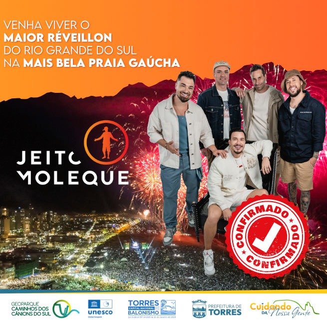 A Prefeitura de Torres, por meio da Secretaria Municipal de Turismo, anuncia oficialmente a banda Jeito Moleque como atração principal do show da virada em 31 […]