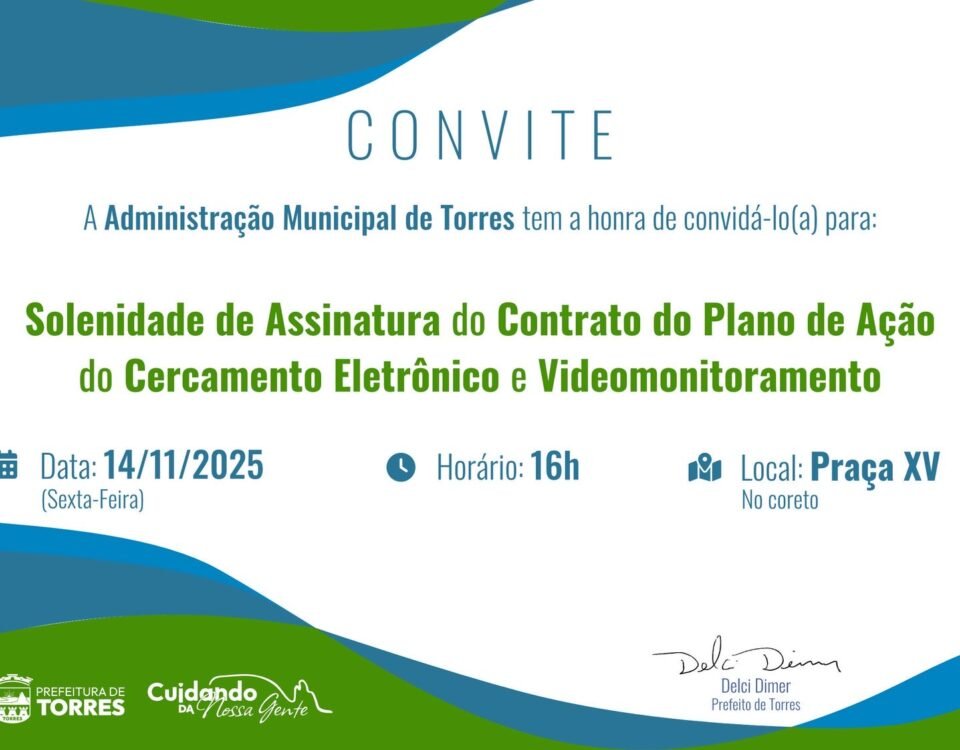 A Prefeitura de Torres convida a comunidade para participar da cerimônia de assinatura do contrato do Plano de Ação do Cercamento Eletrônico e Videomonitoramento. O evento […]