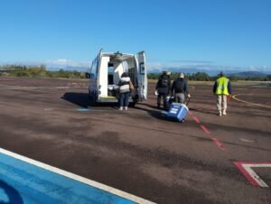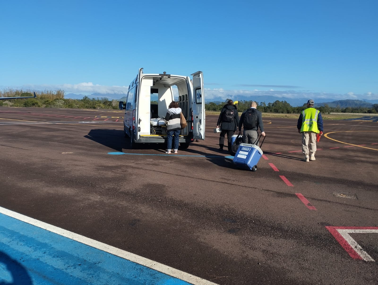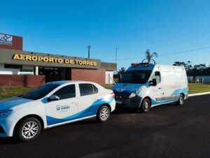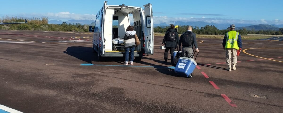 Torres, Rio Grande do Sul – O coordenador de transporte Luís Pedro e o motorista de ambulância Sérgio Peres auxiliaram uma equipe da central de transplante do estado em uma operação de captação de órgãos na manhã desta terça-feira. A equipe, composta por quatro pessoas, chegou ao Aeroporto de Torres para buscar os órgãos de uma paciente do sexo feminino, que teve morte cerebral.