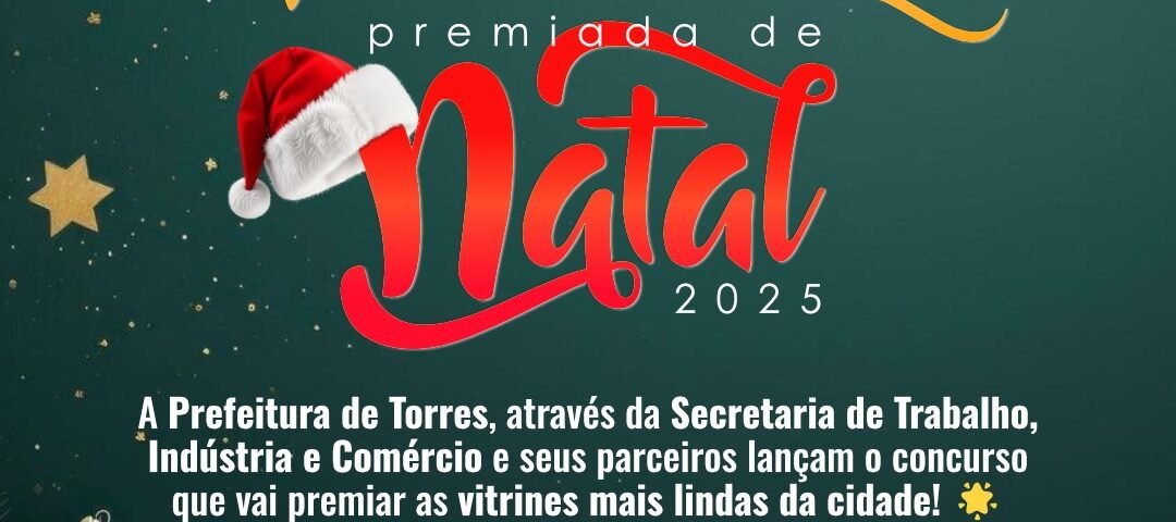 A Prefeitura Municipal de Torres, por meio da Secretaria de Trabalho, Indústria e Comércio (SMTIC), em parceria com a ACTOR, CDL, Sindilojas, ACISATT e Associação da Praça XV, além do apoio das Secretarias de Turismo e de Cultura lança o Concurso de Vitrine de Natal 2025. A iniciativa tem como objetivo valorizar o comércio local durante o período natalino. O concurso busca incentivar a decoração de vitrines comerciais, restaurantes e hotéis da cidade.